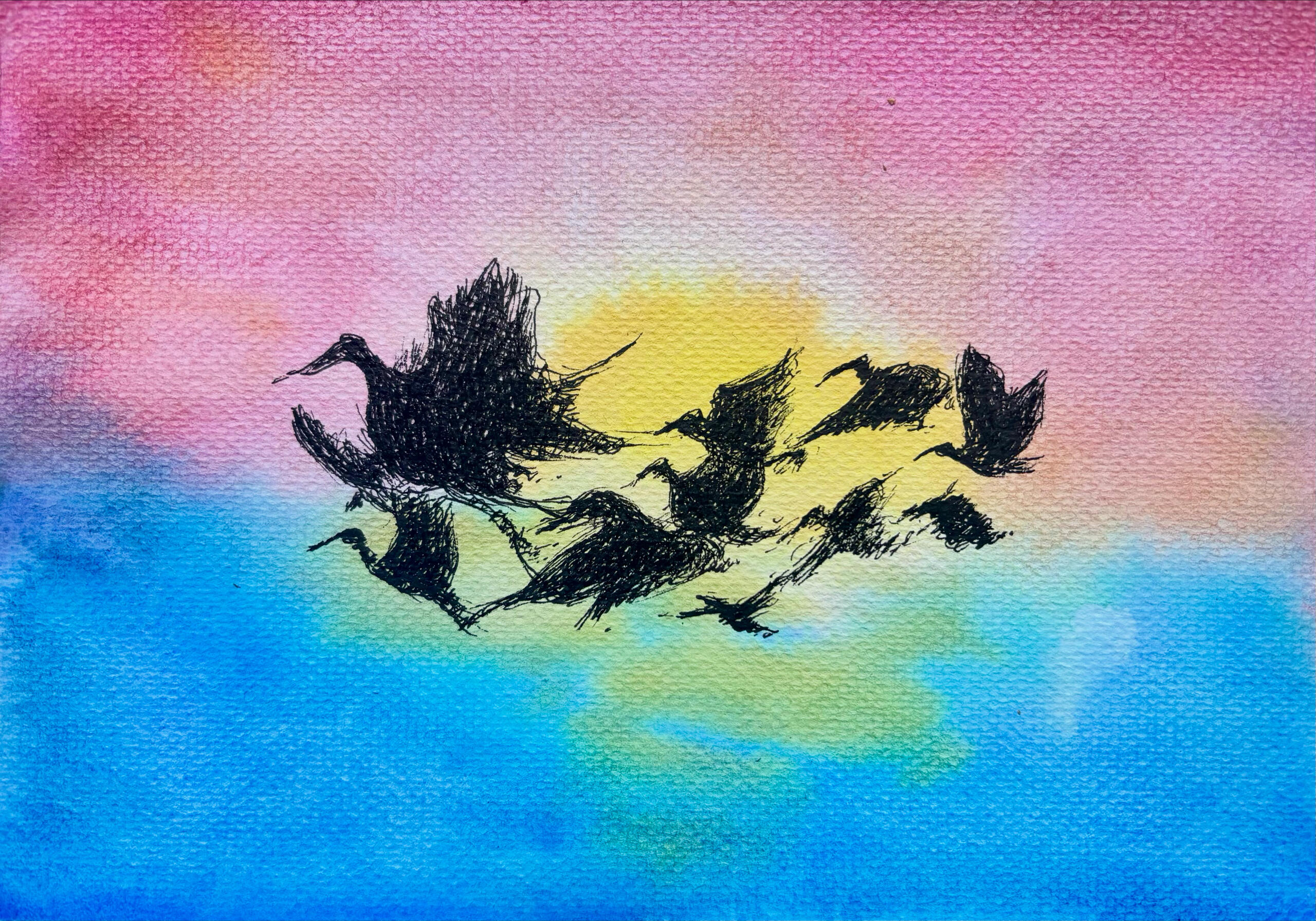"Puesta" Acuarela y té de hibisco sobre papel, 2023